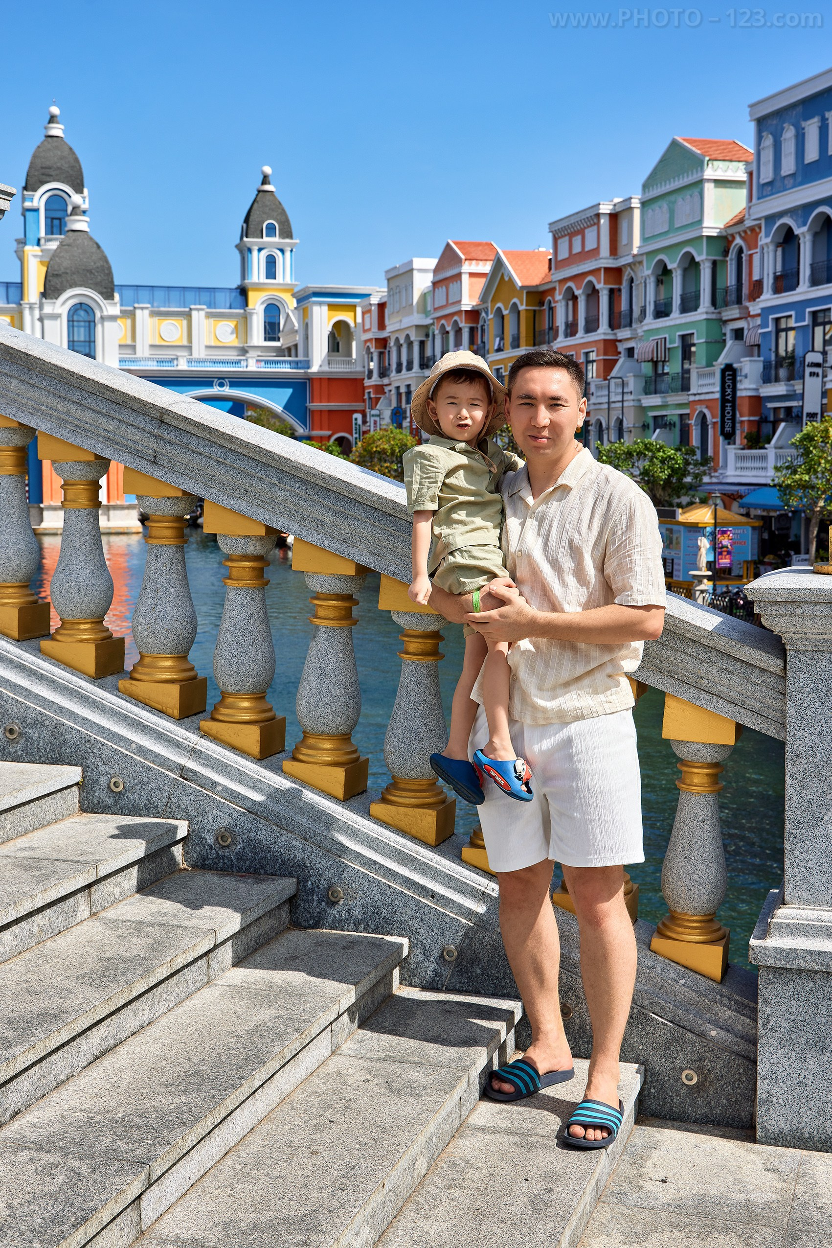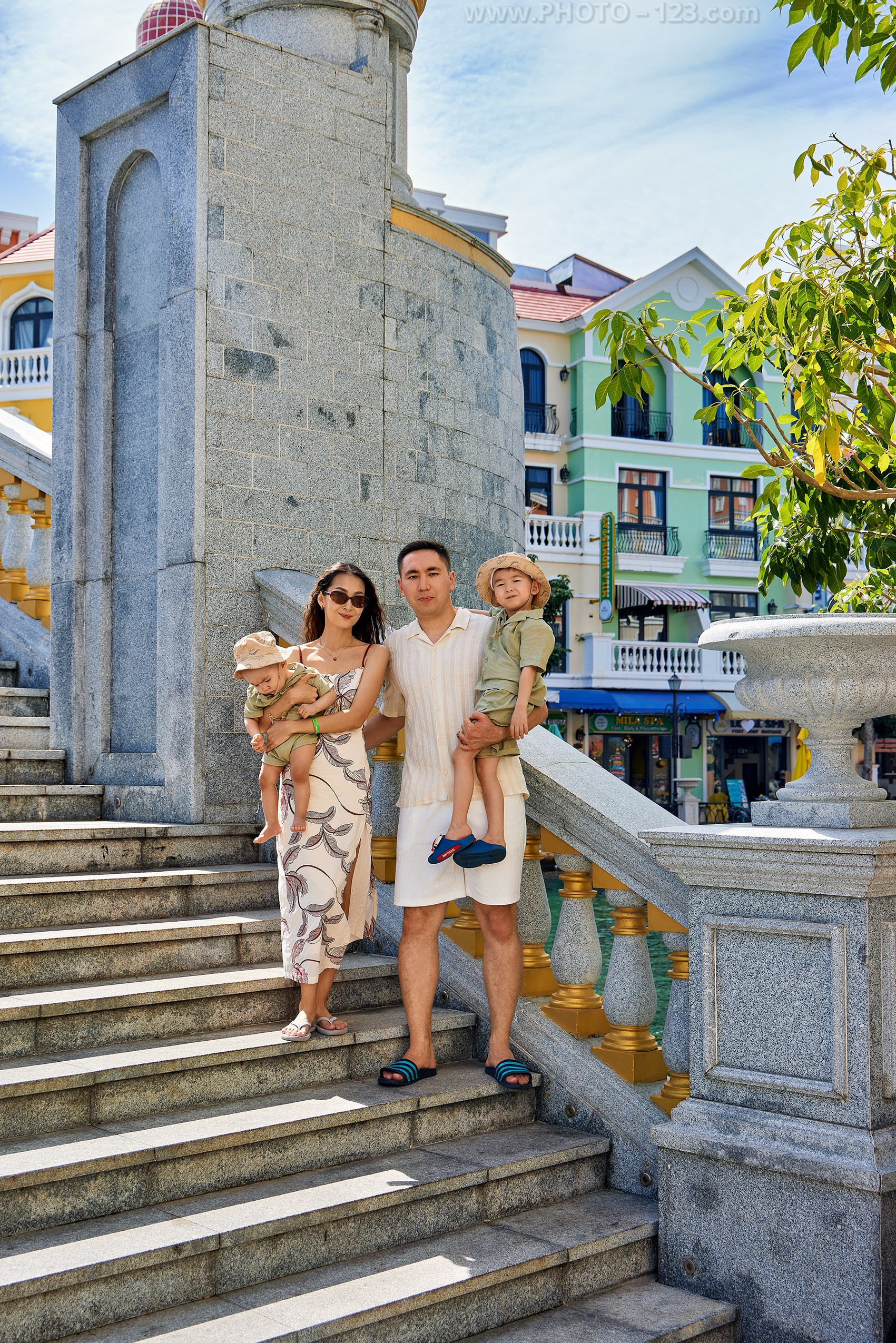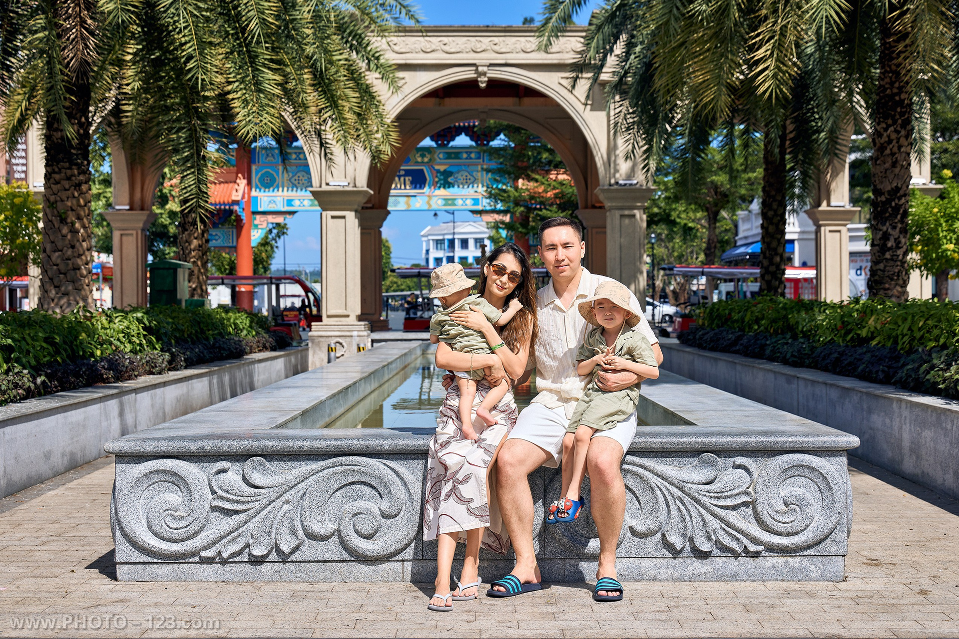 Memorable family photoshoot in Grand World, Phu Quoc (The Venice of Vietnam). Professional vacation and family photographer capturing joyful moments.