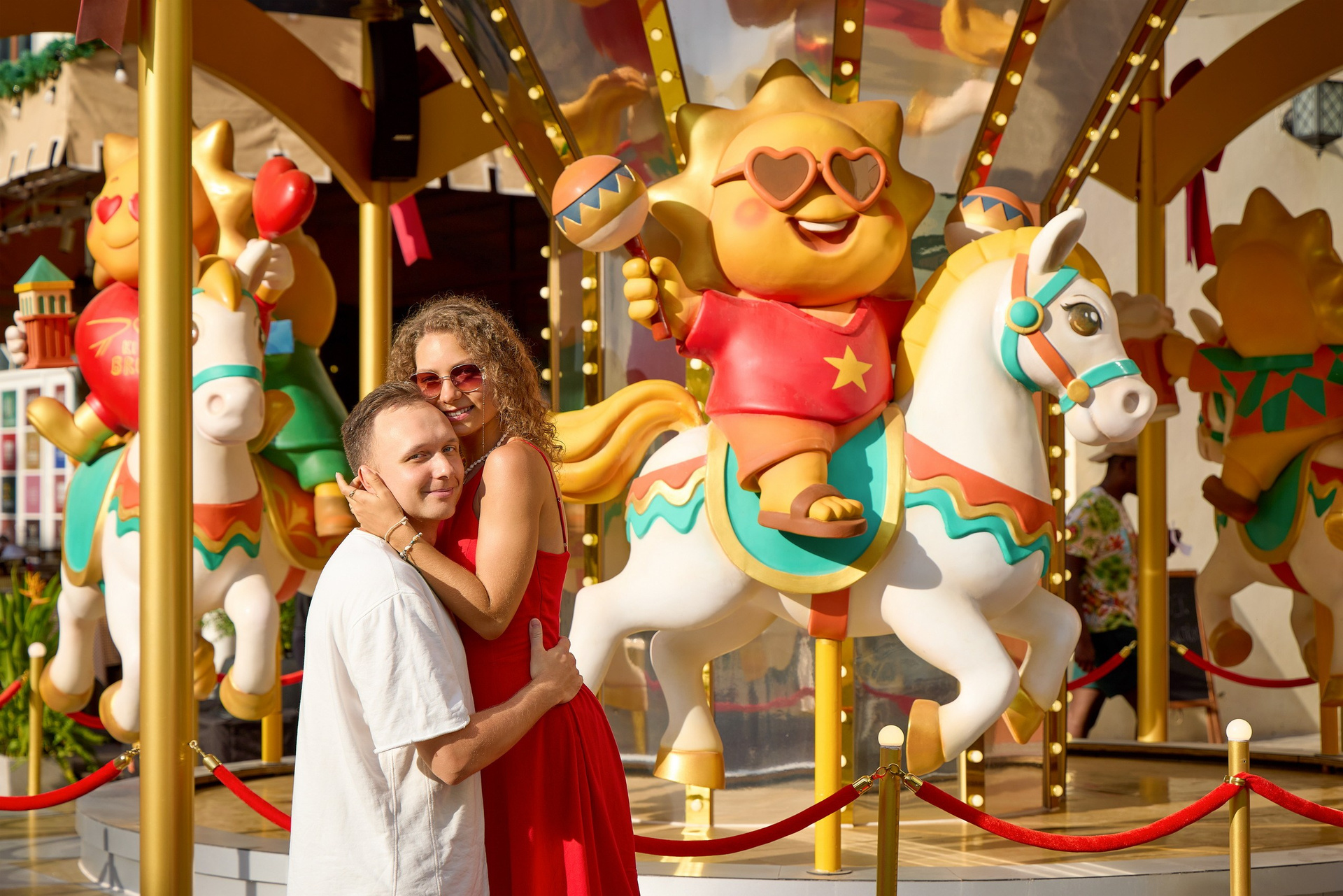 Warm golden-hour light, seaside views and natural emotions come together during this sunset photoshoot in Sunset Town, Phu Quoc.